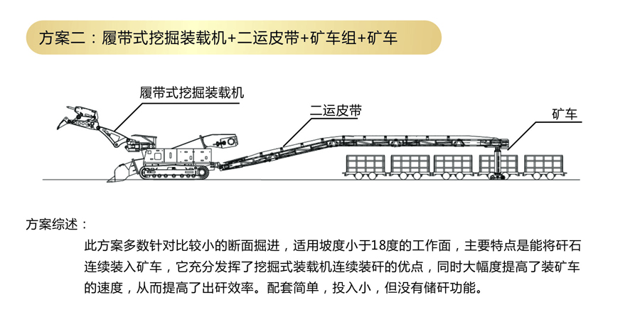 方案二:履帶式挖掘裝載機(jī)+二運(yùn)皮帶+礦車組
